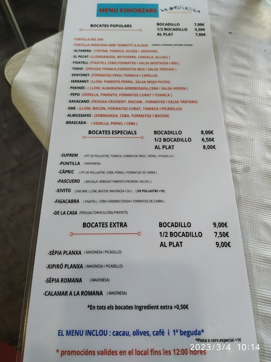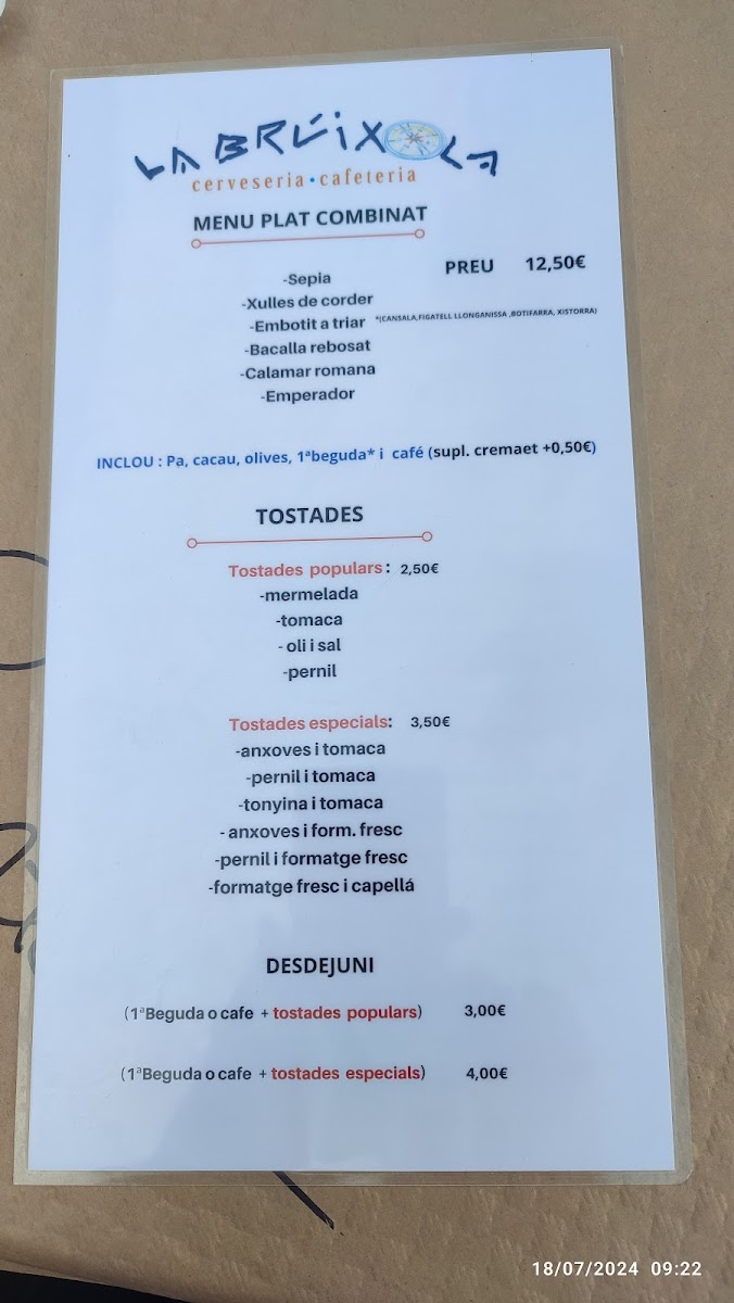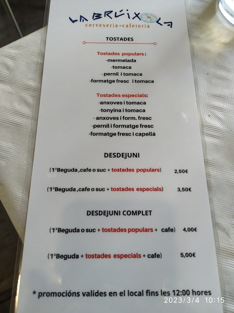 Picture yourself enjoying a refreshing beer accompanied by complimentary peanuts in a picturesque setting, perfectly situated near the lovely Parc Navarro Daràs. Guests like Andrea Sanchez commend the attentive service, describing the staff as friendly and accommodating. Each visit promises not just a meal, but an experience filled with flavors that are sure to impress. Whether you're indulging in a casual lunch or a cozy dinner with friends, La Brúixola aims to enchant your palate and make every dining occasion memorable.